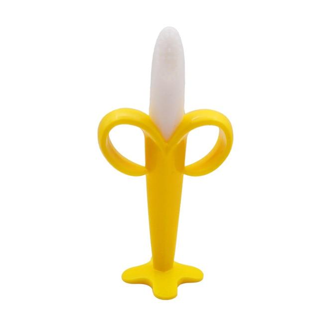 Baby Silicone Training Toothbrush BPA Free Banana Shape Safe Toddle Teether Chew Toys Teething Ring Gift For Infant Baby Chewing