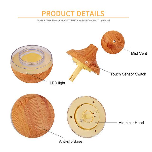 EJOAI 300ml USB Wood Grain Essential Oil Aroma Diffuser Electric Aromatherapy Mist Maker with 7 Color LED Lights for Home Office
